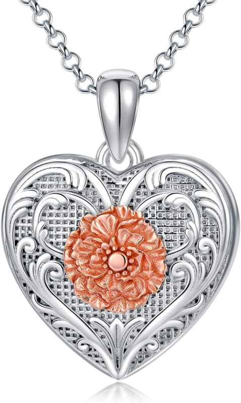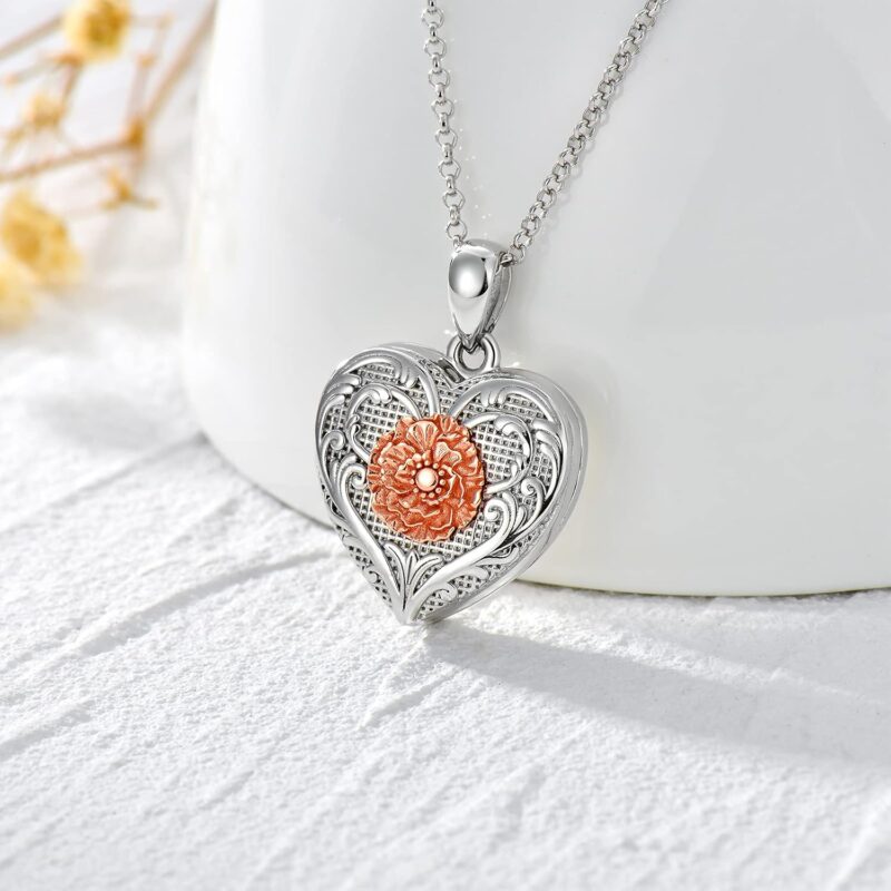 Sterling Silver Pressed Flower Round Pendant Necklace, 16″