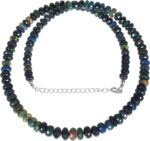 - Gemstone Name: Ethiopian Black Opal/ Necklace Length : 45CM Approx With Sterling Silver Lobster Lock/Gemstone Shape: Rondelle Faceted / Gemstone Size : 3 to 4.5 MM Approx